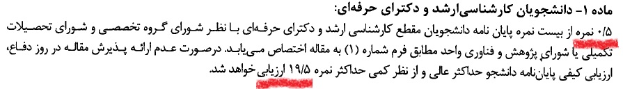روز گذشته بود که جناب دکتر محفوظی به بنده و آقای پورمحمود اعلام کردند که نمره پایان نامه بر اساس 19.5 و 0.5 خواهد بود. یعنی 19.5 نمره پایان نامه شما خواهد بود و 0.5 نمره باقی مانده با توجه ارائه مقاله در همایش ها و یا ثبت در سایت های معتبر قابل تخصیص خواهد بود، باور نداشتم تا اینکه بخشنامه دانشگاه آزاد رو دیدم! اینجا